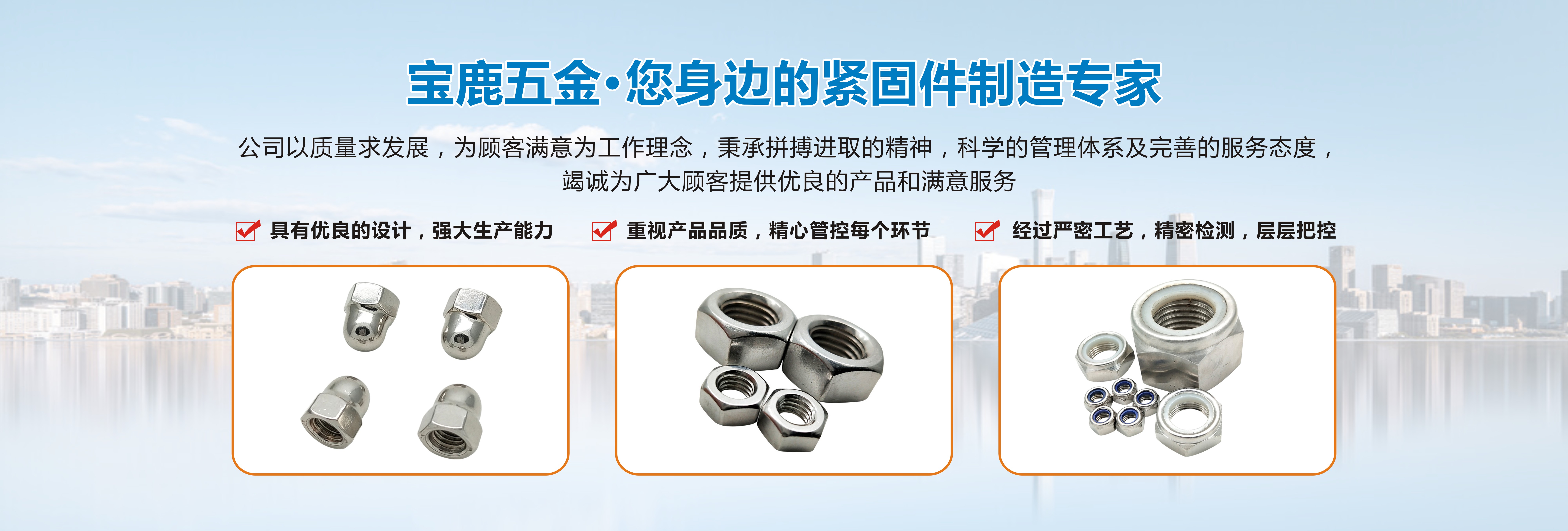 東莞市寶鹿五金有限公司是以生產、銷售不銹鋼緊固件的專業(yè)企業(yè)。產品標準有: 國標、美標、英標、德標、日標等。主要產品有:不銹鋼外六角、杯頭內六角、平頭內六角、圓頭內六角、機米螺絲、盤頭機螺絲、沉頭機螺絲、盤頭自攻螺絲、沉頭自攻螺絲、 大扁頭機螺釘、大扁頭自攻螺絲、馬車螺絲以及各種螺母、平墊、彈墊、各種擋圈、介子。生產加工非標各種材質超長超大螺母、螺桿,304, 31 6化學錨栓等非標加工,防松螺絲定制與加工,精密CNC加工,數(shù)控車床加工件,不銹鋼303,銅,鋁,鐵,塑膠等車件。